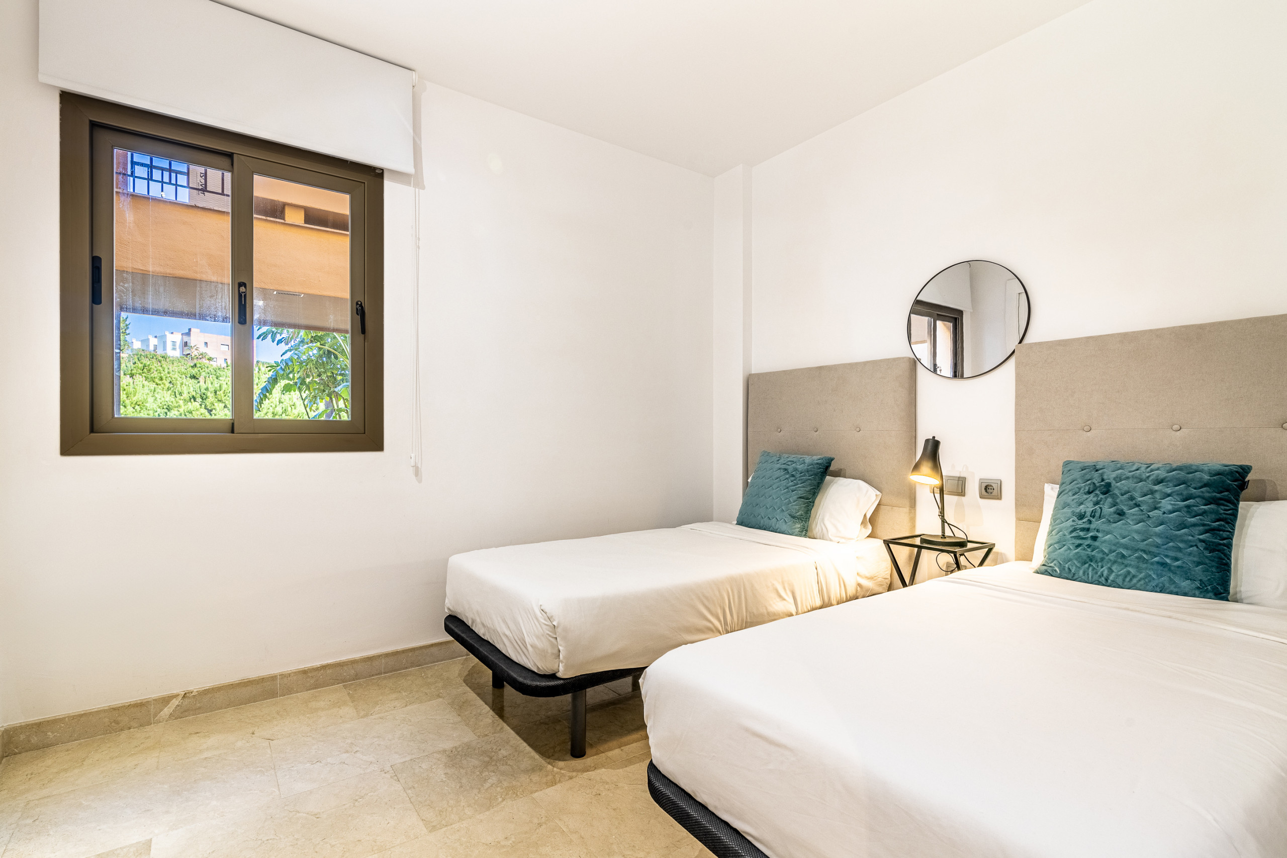 Este apartamento decorado con gusto está ubicado en La Hacienda del Señorio de Cifuentes y cuenta con dos amplios dormitorios y dos baños. El dormitorio principal ofrece una cama de matrimonio y un cuarto de baño ensuite con bañera y doble lavabo, y el otro dormitorio tiene dos camas individuales y un baño con ducha. Los dormitorios ofrecen armarios empotrados y el dormitorio principal tiene acceso directo a la terraza.
