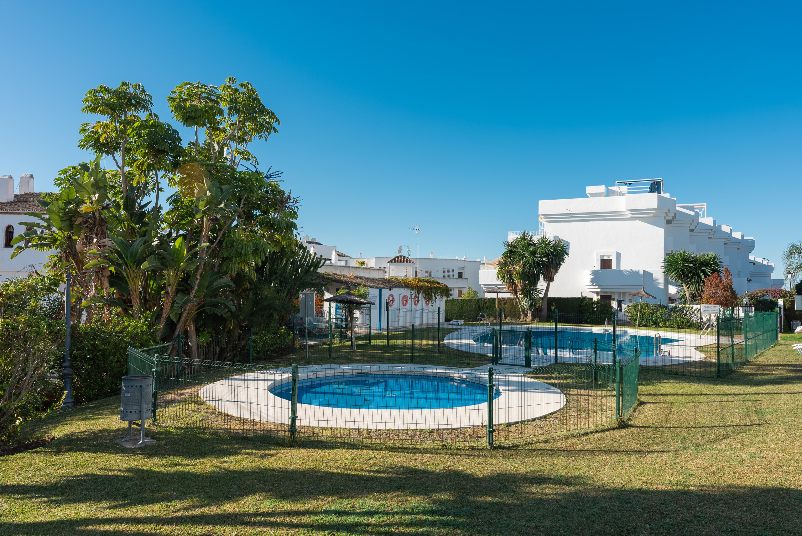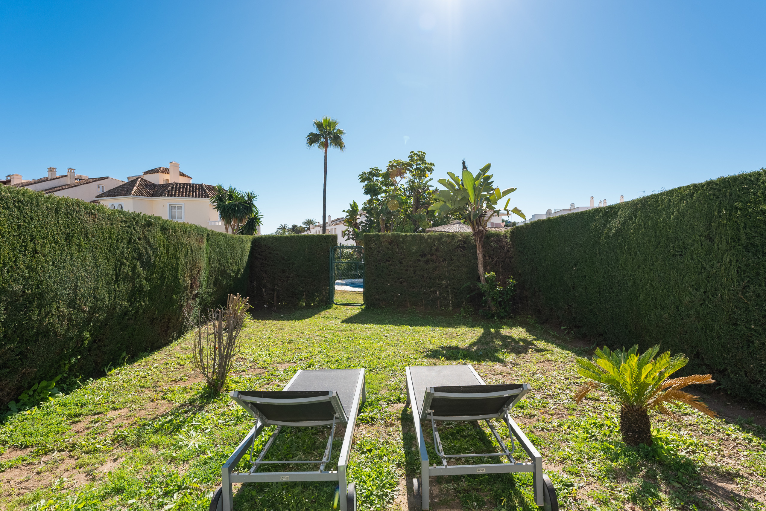 Los puntos más destacados de este apartamento son su amplia terraza y jardín privado, ideales para tomar el sol, disfrutar de comidas al aire libre o celebrar una barbacoa, así como el acceso directo a la piscina comunitaria, permitiéndote darte un baño a solo unos pasos de tu jardín. Gracias a su orientación sur, el espacio exterior recibe abundante luz solar durante todo el día, convirtiéndolo en un auténtico oasis.