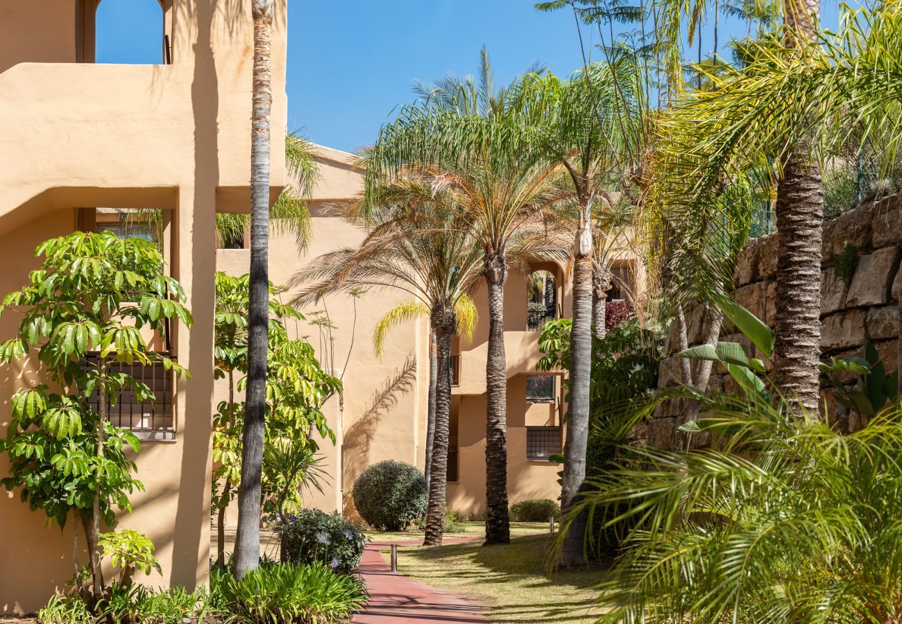 Set within the picturesque Golf Valley, this welcoming apartment located in La Hacienda del Señorio de Cifuentes features two large bedrooms and two bathrooms. The master bedroom offers a king size bed and an ensuite bathroom with bathtub and double sink, and the second room has two single beds and a bathroom with shower. The two bedrooms offer built-in closets and the master bedroom has direct access to the terrace.