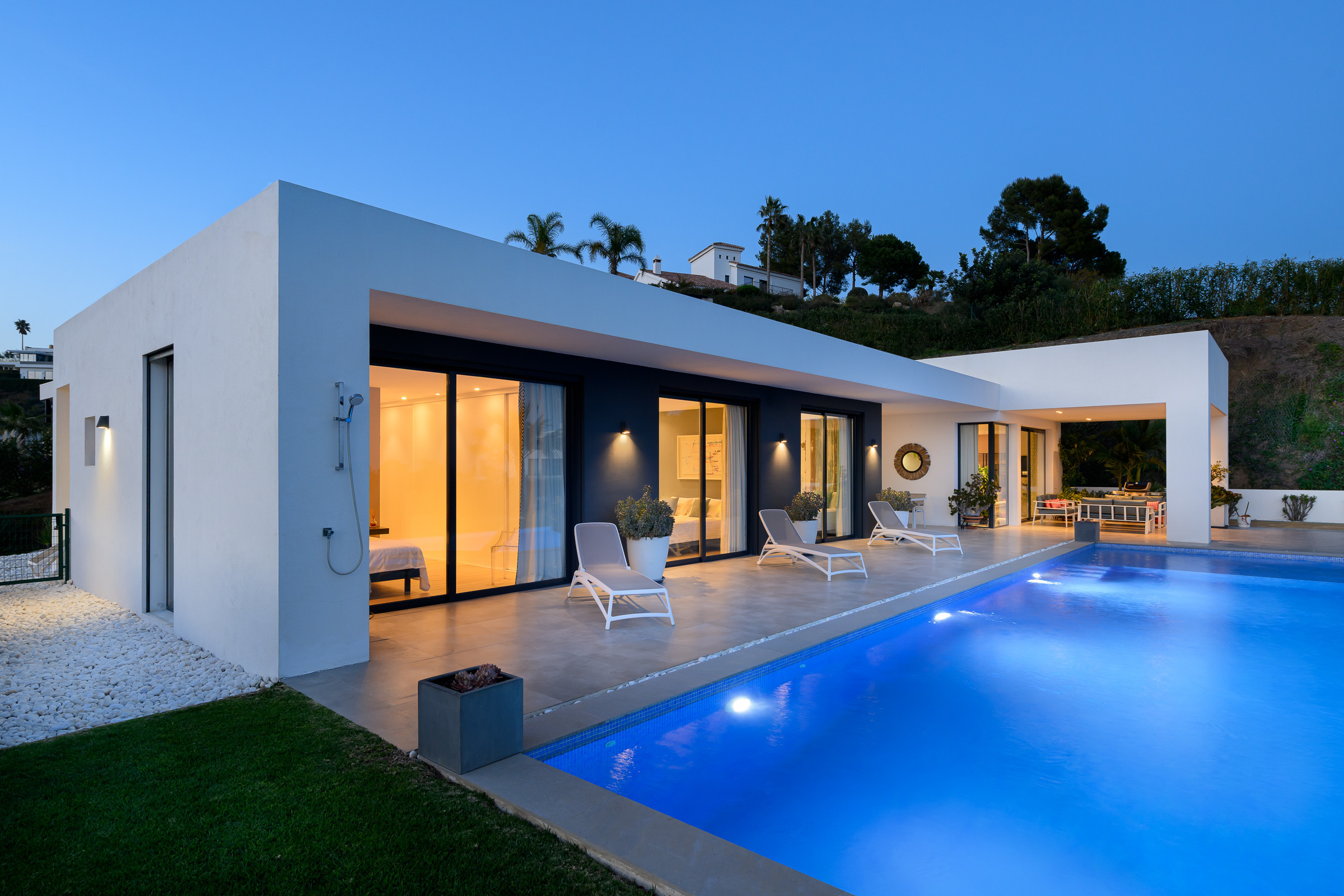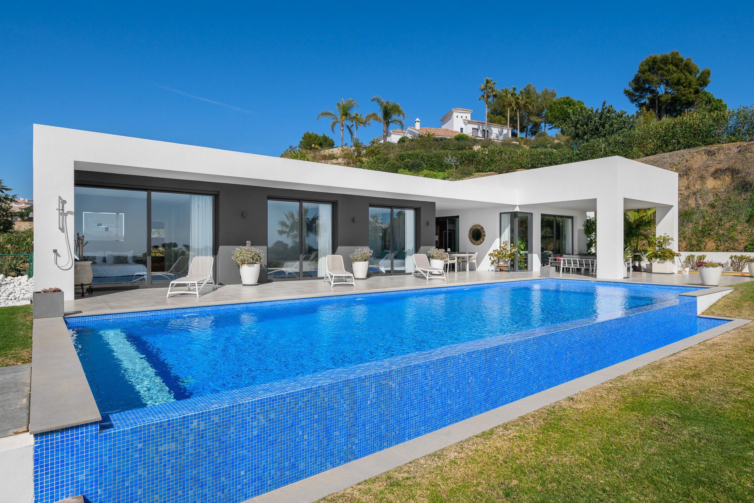 The villa is perfectly located for those who love nature, golf, and coastal charm. Just 3 minutes from the prestigious Marbella Club Golf Resort, 10 minutes from Anantara Villa Padierna hotel, 15 minutes from the town of Benahavís, 20 minutes from Estepona, and 25 minutes from Puerto Banús, it combines ultimate privacy with easy access to beaches, restaurants and shops. Malaga International Airport is 1 hour away.